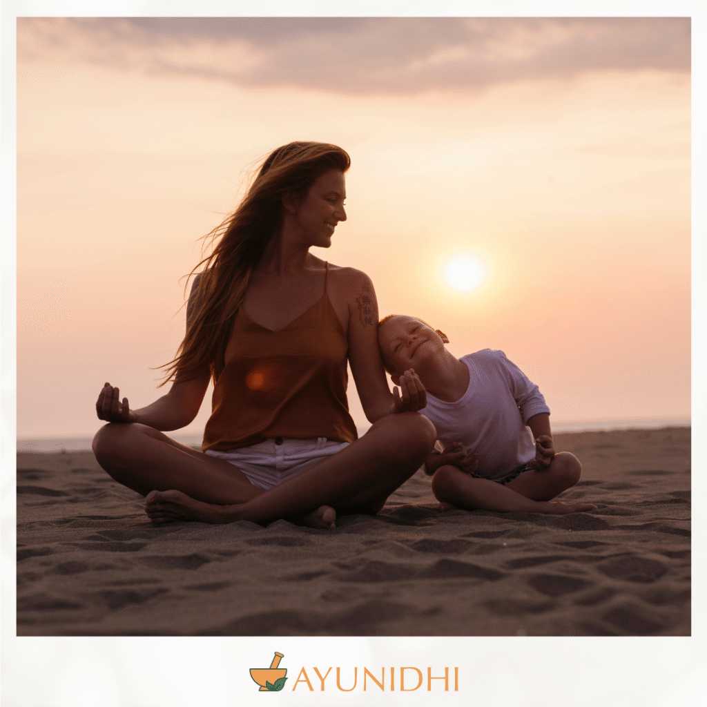 Explore AyuNidhi’s AyurYoga and personalized Ayurvedic lifestyle sessions for mothers. Learn how to restore your energy, harmonize your hormones, and reconnect with yourself — because when you thrive, your family thrives.